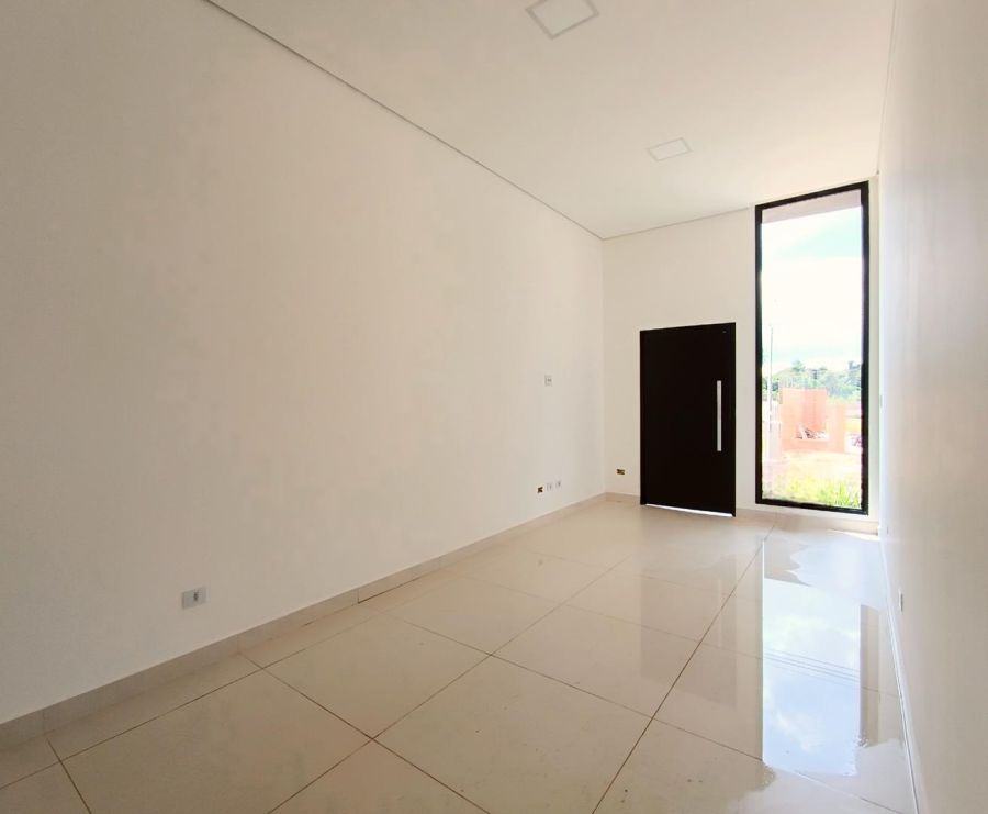 Casa térrea nova e moderna!Possui 2 quartos sendo uma suíte, sala ampla com cozinha integrada, lavabo, área gourmet, quintal e 4 vagas sendo 2 cobertas.