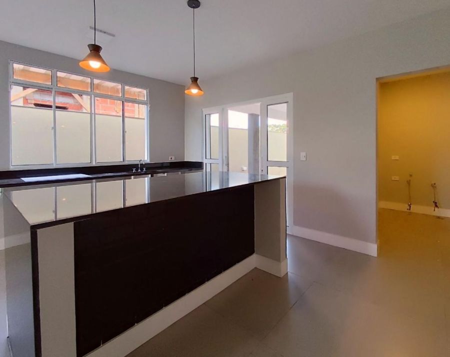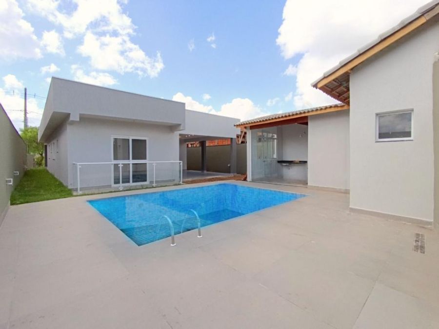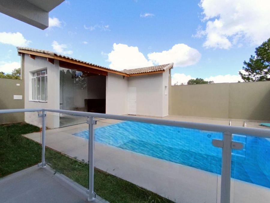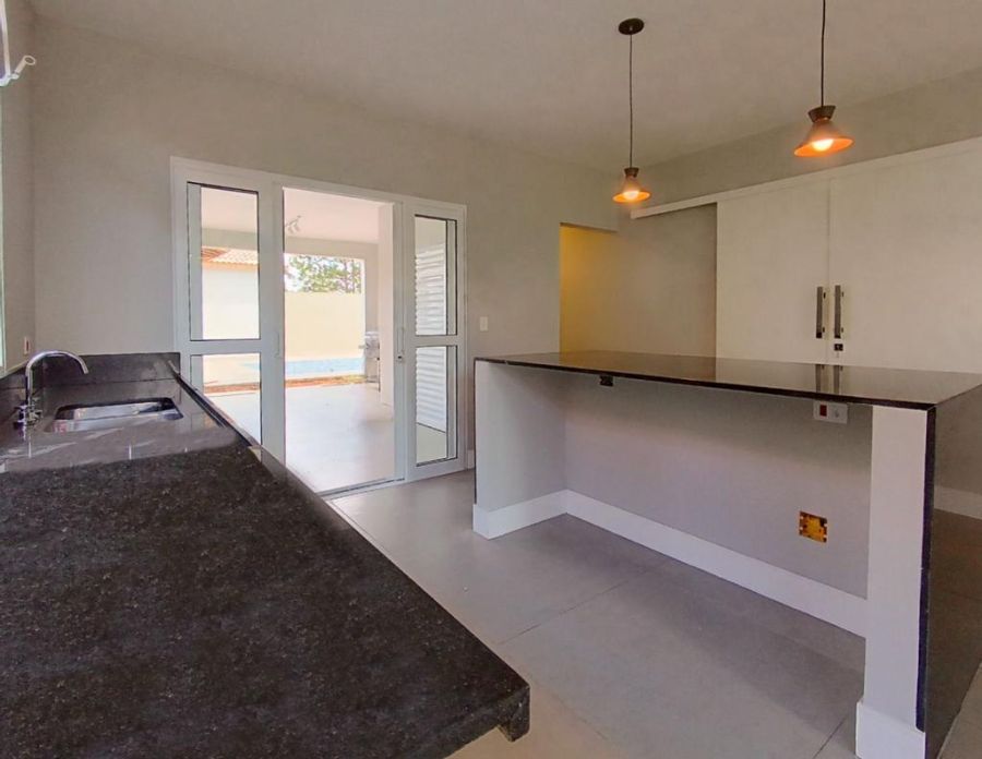 Possui Sala ampla com pé direto duplo bem iluminada e acabamento de primeira , conversando com a cozinha toda com balcão em pedra de mármore escuro, com acesso a área gourmet com piscina, que tem acesso a uma edícula, possui 3 dormitórios sendo uma suíte com varanda, lavabo, quintal e vaga para 2 carros coberta e 2 descobertas.